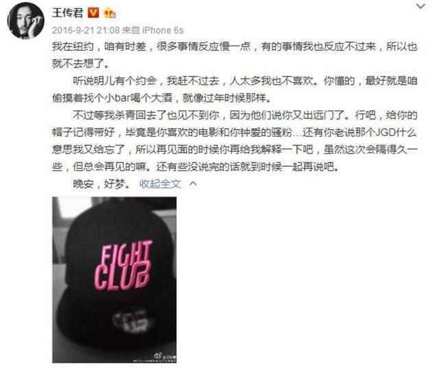 在乔任梁去世时,王传君曾在微博上发出一封写给乔任梁的信,信上表面像是朋友聊天一般,但字里行间都表达了沉重的哀痛。